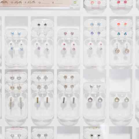 Серьги из различных материалов: хирургическая сталь, медицинский титан, медицинский пластик, ниобио. Модели представлены всеми цветами радуги, с кристаллами и без, в разных размерах.